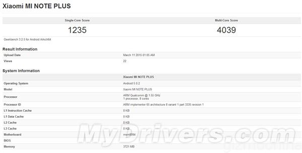 GeekBench: Xiaomi Mi Note Plus arrives with Snapdragon 810 and 4GB RAM