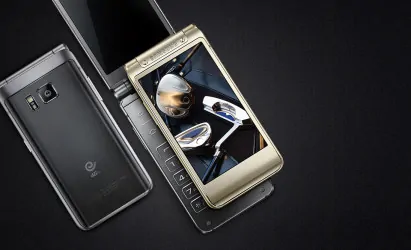 If we observe carefully, we will notice that a part of the Samsung W2016 looks similar to the Galaxy S6. In general, this is a flip phone whose top half contains 2 screens (3.9-inch 1280 x 768 pixels AMOLED display each), and bottom half has a T9 numeric keypad and a battery. The machine weighs 204 grams, measures 15.1 mm of thickness (when closed) and allows you to choose between gold or silver color.