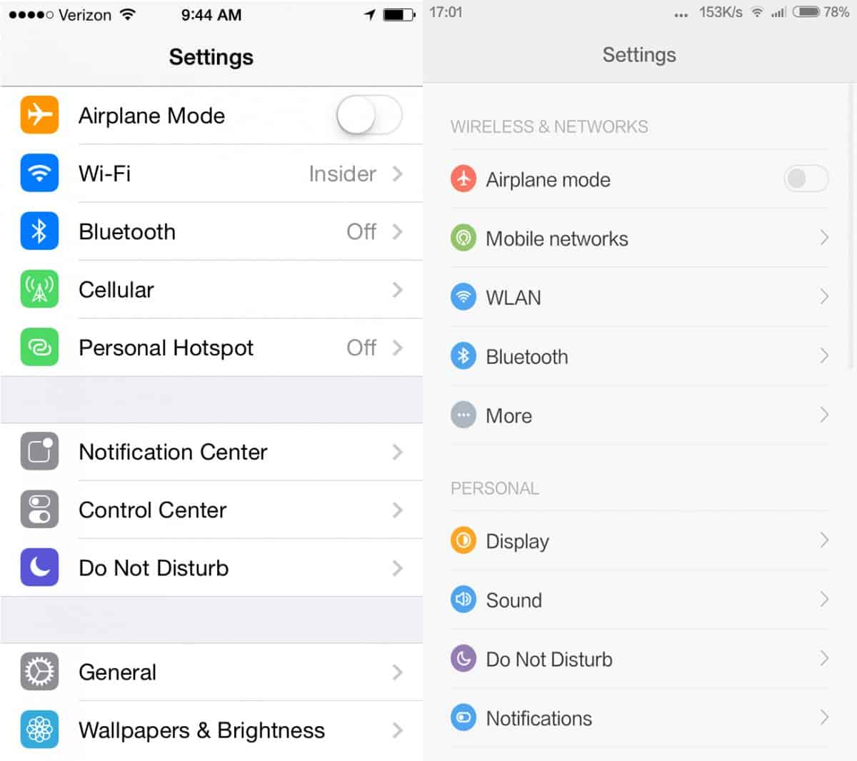 MIUI 6 vs iOS7